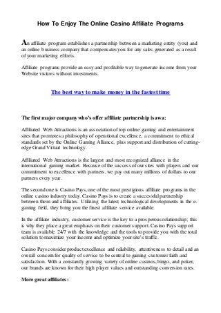 A great practice hint if you’re an offensive or protective lineman is to exercise showing up in the sled as frequently that you can. When you adored this article along with you want to get more information concerning Casino Affiliates List kindly check out the web site. The sled is actually a slab of metallic with extra padding in the stop to stand for the opposing line. You hurry it and force it as being you will while in a true game.